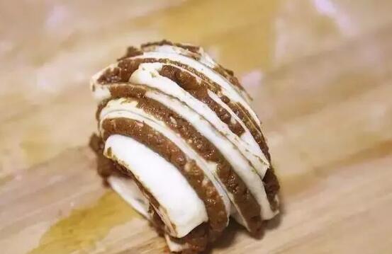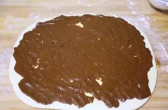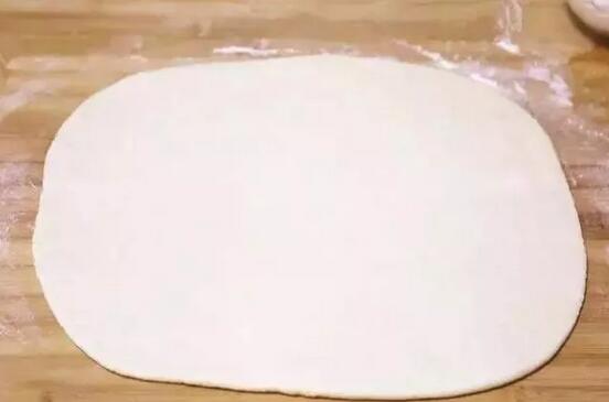 7、把芝麻酱涂满在面饼上,如果芝麻酱太稀了,一定要加一些面粉,让芝麻酱干一些,别流的哪都是。