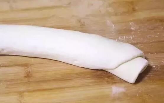11、把面团拿起来,再把面团的两头朝下翻,然后把底部捏紧,花卷就捏好了,其它的花卷都捏好后就可以上锅蒸了。