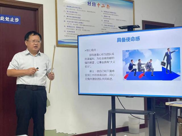 讲解“挑战创新”,鼓励大家打破“传统行业难创新”的思维定式,举例探讨“如何在渠道拓展、工艺优化、包装设计上探索新路径”。生动的案例、通俗的语言,让原本抽象的领导力理论变得可理解、可参照,参会人员专注记录,不时点头共鸣。