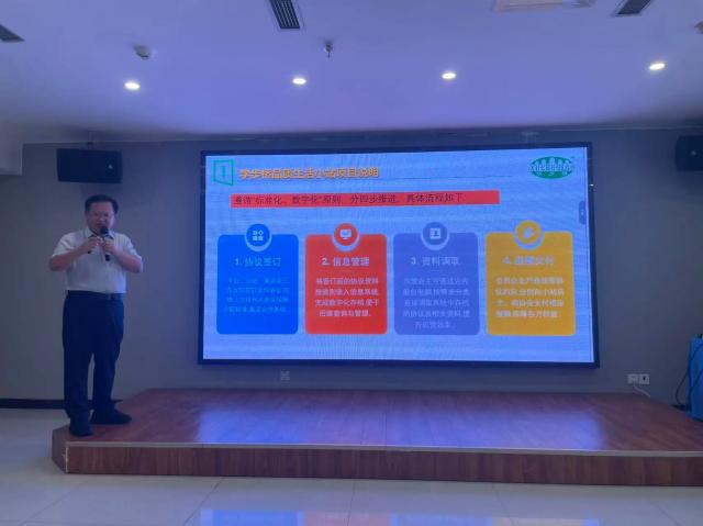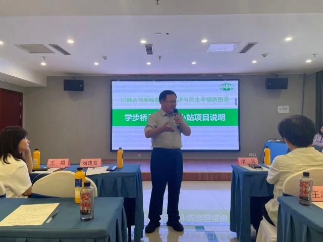 公司总经理刘建堂率先上台,以“以融合创新绘就实体经济与民生幸福新图景”为主题,深入浅出地讲解了学步桥品质生活小站项目的初衷、定位、服务内容与经营模式。他提到,在社区发展的新征程中,居民对生活品质的需求日益多元,而“学步桥品质生活小站”正是为解决这一需求而生——整合优质生活必需品销售、私域电商运营、商协会资源对接等多元服务,让居民在家门口就能享受到全方位、个性化的服务。刘建堂总经理的分享,让现场嘉宾对项目的社会价值有了更深刻的认识,也看到了学步桥食品有限公司深耕社区服务的决心。