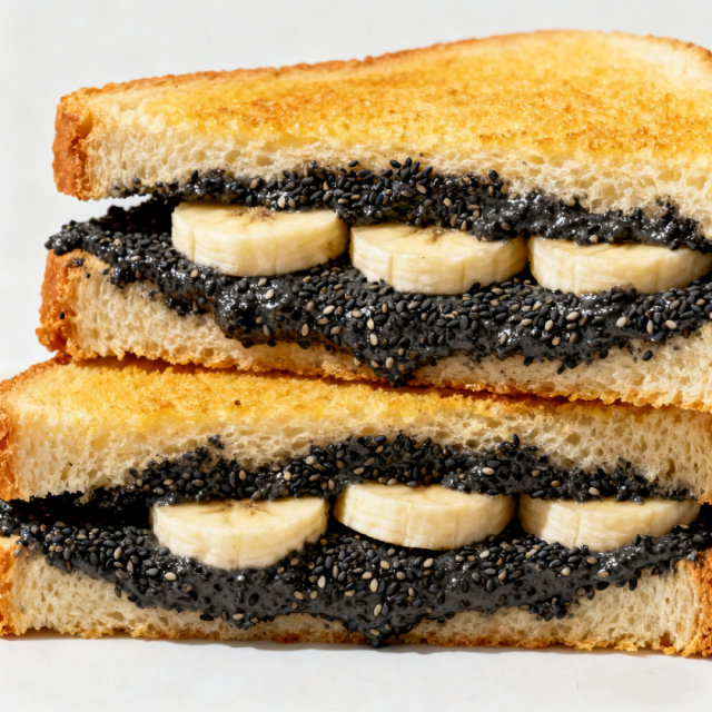 吐司片抹一层厚黑芝麻酱,夹上切片的香蕉,放进平底锅小火煎 30 秒,直到吐司边变脆。咬下去,温热的吐司裹着绵密的香蕉和香浓的芝麻酱,甜而不腻,比果酱三明治更有层次感,孩子也超爱吃。