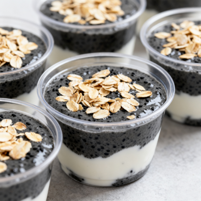 酸奶倒在杯子里,淋上一勺黑芝麻酱,用勺子轻轻划开,再撒点燕麦片、坚果碎 —— 酸甜的酸奶搭配醇厚的芝麻酱,口感丰富,低卡又健康,追剧时当零食,比奶茶还过瘾。