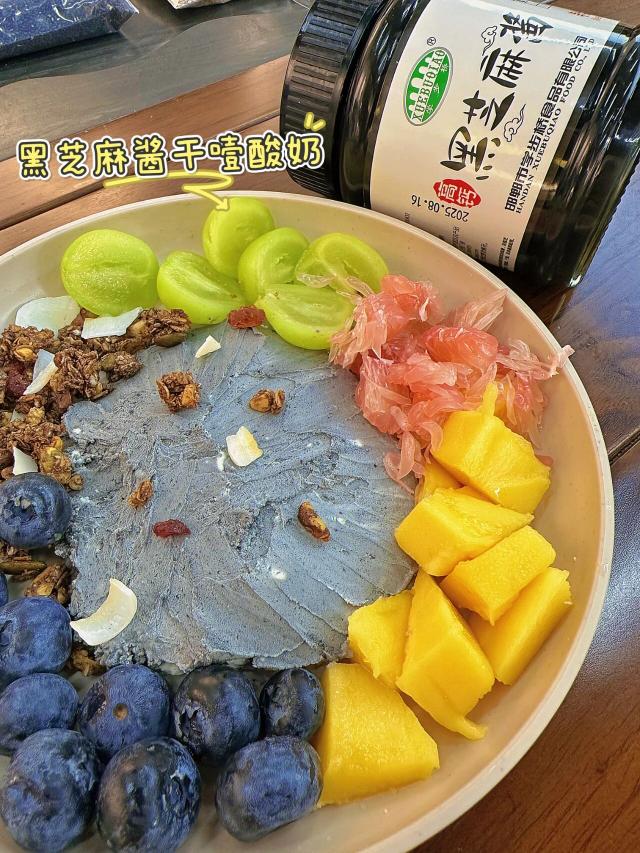 如果说普通酸奶是清爽,那这道“干噎酸奶” 就是把幸福感拉满的绵密炸弹!黑芝麻酱的坚果香和浓稠酸奶碰撞,挖一勺像在吃冰淇淋,还能嚼到脆生生的坚果碎,解腻又顶饱,当早餐或下午茶都超合适~