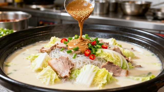 在邯郸,有一道人尽皆知却“名不符实”的硬菜——洛阳白菜。听着像河南美食,实则是邯郸人刻在骨子里的味觉记忆。清末邯郸的王姓富商宴请宾客时,坚持用洛阳石堰白菜入菜以显规格,家中厨子将白菜手撕成块,搭配肉片、粉丝慢炖出奶白浓汤,最后淋上芝麻酱提香——既保留白菜脆嫩本色,又借芝麻酱中和菜的清寡,这道汤鲜味浓的菜肴就此诞生,因主料源自洛阳而得名“洛阳白菜”。
