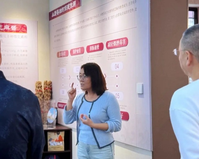 在营养科普环节,邯郸职业技术学院营养专家武玉涛老师,用通俗的语言拆解了小磨香油和芝麻酱的保健功效——“香油中富含的不饱和脂肪酸,被誉为‘血管清道夫’,经常食用可以很好的保护心血管;芝麻酱号称‘钙王’,每100克黑芝麻酱含钙量达1247毫克,是牛奶的8倍!”现场不少参与者掏出手机拍下文化墙上的内容,“以前只知道香油香,没想到还有这么多健康门道!”一位阿姨的感慨道出了大家的心声。