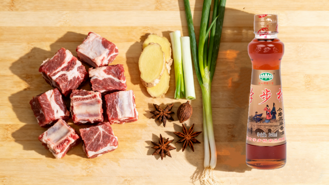 第一次,炒香调料时加1勺:锅中放少许底油,放入姜片、葱段、八角炒香,然后加入1勺学步桥小磨香油,翻炒10秒,让香油的香气融入调料中,再放入牛肉块翻炒至表面微焦。这一步能给牛肉 “打底增香”,让香油的香气渗透到牛肉纤维里。