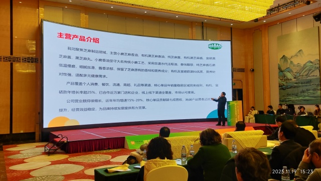 刘总从品牌根基、原料保障、工艺传承等维度,详解三产融合发展实践:在河北大名、湖北襄樊等地布局5000亩优质芝麻种植基地,坚守“水代法”低温工艺,融入现代全流程质检体系,既保留芝麻原生营养与醇香,又通过有机认证与溯源体系筑牢品质防线。