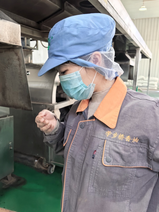 在学步桥小磨香油的生产车间里,“女技工”曾是一个空白的称谓。依托重体力作业、高温环境的传统“水代法”工艺,让这里20年来始终是男技工的天下。直到2025年11月,王小英书写了一个传奇——她顺利通过技工考核,成为学步桥小磨香油发展史上的第一位女技工。从2019年入职,到如今成功通关,5年时光里,她用信念挑战极限,让传统技艺在女性手中绽放出新的光彩。