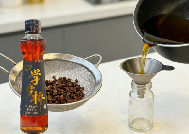 【原料准备】学步桥有机黑芝麻小磨香油100ml、花椒5颗