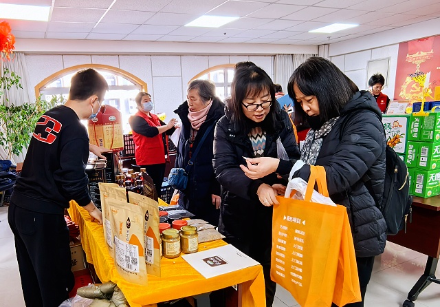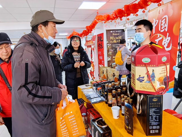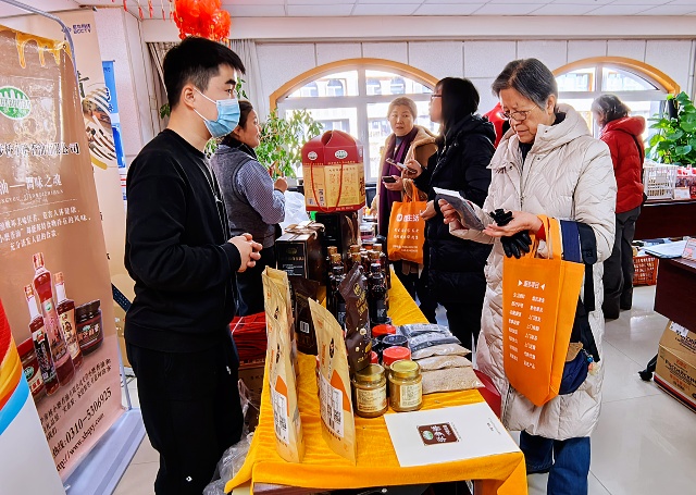 本次新春服务大集现场张灯结彩、暖意融融,热闹非凡。活动既设土特产展销区,以实物展示、视频推介等形式助力地方好物走进京城;更集结了养老咨询、法律咨询、健康义诊、书法送福、公益理发等多元便民服务,让参与者在购置年货的同时,一站式感受新春关怀。其中,学步桥小磨香油的展位前人头攒动,浓郁绵长的芝麻香成为现场最具辨识度的“气味名片”,吸引众多参观者驻足问询。