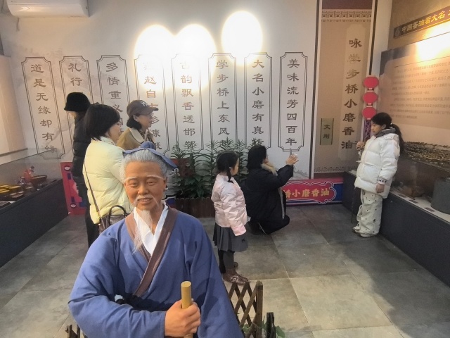 走进文化馆,图文并茂的文化展墙前总是围满认真阅读的游客。大家通过文字与图片,系统了解大名小磨香油的悠久历史、文化内涵与传统制作流程,在一字一句中感受非遗技艺的厚重底蕴。一旁的工艺微缩模型区域,更是直观还原了香油从原料筛选、炒制、磨浆到压榨、过滤的完整工序,让游客看得清楚、学得明白,对传统小磨香油工艺有了更加真实、细致的认知。