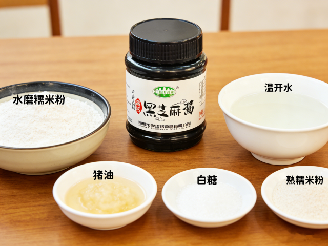 2、黑芝麻馅:学步桥高钙黑芝麻酱80g、猪油40g、白砂糖30g、熟糯米粉15g(防粘)