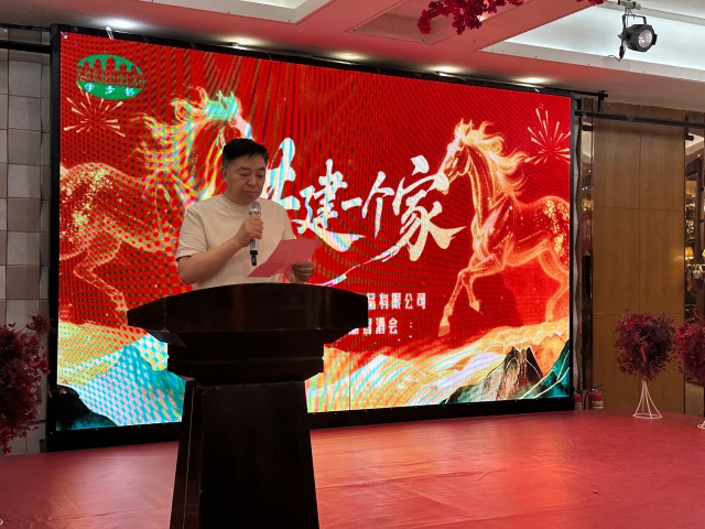 家有领航者,发展有方向。刘建堂总经理上台致辞,深情诠释“共建一个家”的核心内涵——这不是口号,而是彼此依靠、共同成长的温暖集体。他回顾了过去一年全体家人的辛勤耕耘,惦念生病住院的老员工,承诺公司将持续关怀帮扶,彰显大家庭的温情;恰逢三八国际妇女节临近,他向全体女同胞致以节日祝福,感谢她们撑起企业“多半边天”。同时,刘总明确2026年作为阿米巴经营元年的重要意义,提出“把心聚在一起、把事做在实处、把梦落在脚下”的期许,愿与全体家人以事业合伙人之名,共赴共同富裕新征程。